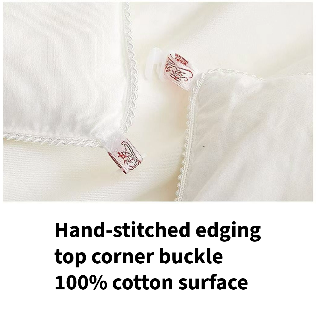 This Duvet uses 100% pure Mulberry Silk material as the centre, which weighs 2kg. This weight is suitable for any season, from hot summer to cold weather. Silkworm cocoons weigh only about 1 gram each and must undergo manual processing to become continuous filaments, making silk quilts exceptionally precious—a joint masterpiece of human ingenuity and nature. Silk quilts offer the best breathability, feel gentle against the skin, and promote better sleep. Unlike cotton quilts, they don't require frequent airing out, and they conform to the body more effectively than synthetic materials like polyester.