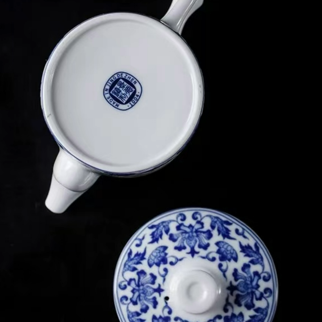 The elegant style of blue and white porcelain, combined with exquisite craftsmanship, enhances the owner's taste and tea-drinking pleasure. Perfect for family use or for friends over afternoon tea, they're sure to be amazed. This nine-piece tea set features wide, easy-to-use teapots, each featuring extensive openwork carving. The capacity of the teapot is 240ml, the cup is 225ml, and the teacup is 55ml.