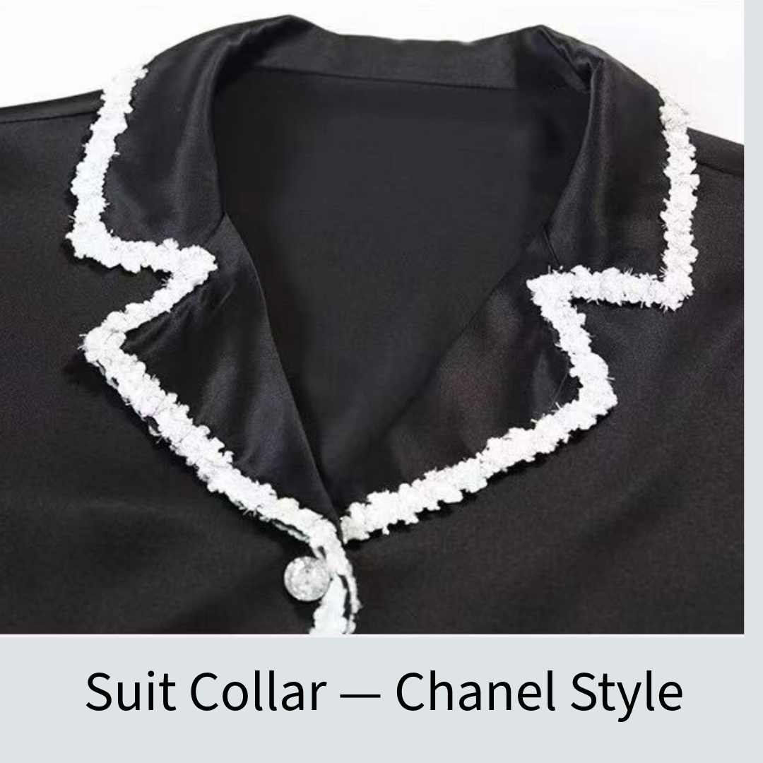 This women's mulberry silk nightgown features a Chanel-inspired design. Crafted from natural mulberry silk by a large-scale nightwear manufacturer in Hangzhou, it offers reliable quality and premium fabric. Perfect for ladies who value quality living. Classic black with white accents exudes elegant sophistication.