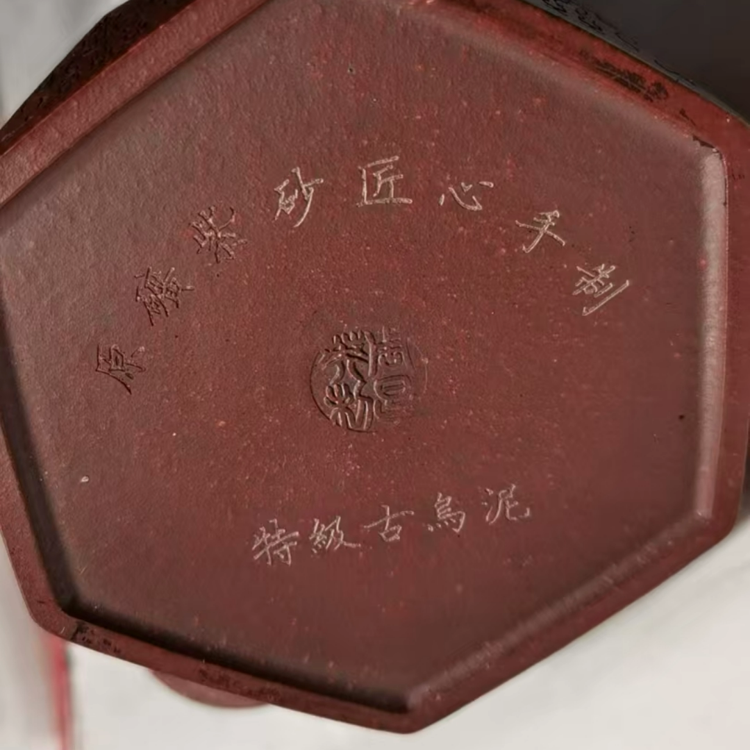 Hexagonal Carved Purple Clay Teapot---Ancient Sludge from Original Mine